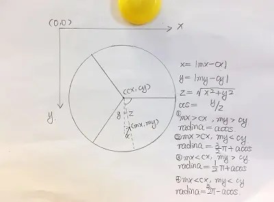 关于如何判断鼠标位置与圆心之间的弧度,小编画了如下的一个饼图,只能帮到这儿了...