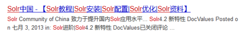 在搜索结果展示中突出显示搜索的关键字。下图是在百度中输入solr进行搜索的一条结果: solr是红色高亮的