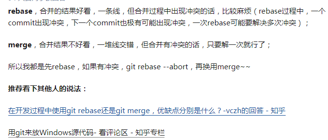 ③ merge & rebase的区别是啥?,贴下知乎上比较简洁的答案