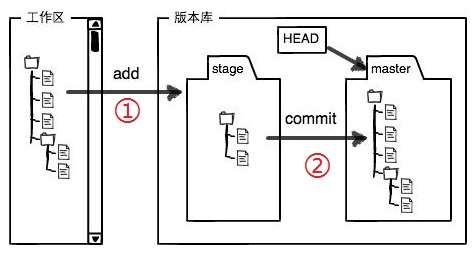 ① 用git add命令将工作区的修改文件添加到暂存区;