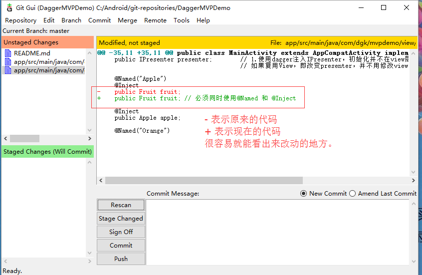 master的readme.md里写上Creating a new branch is quick AND simple.,提交 - ③ 将