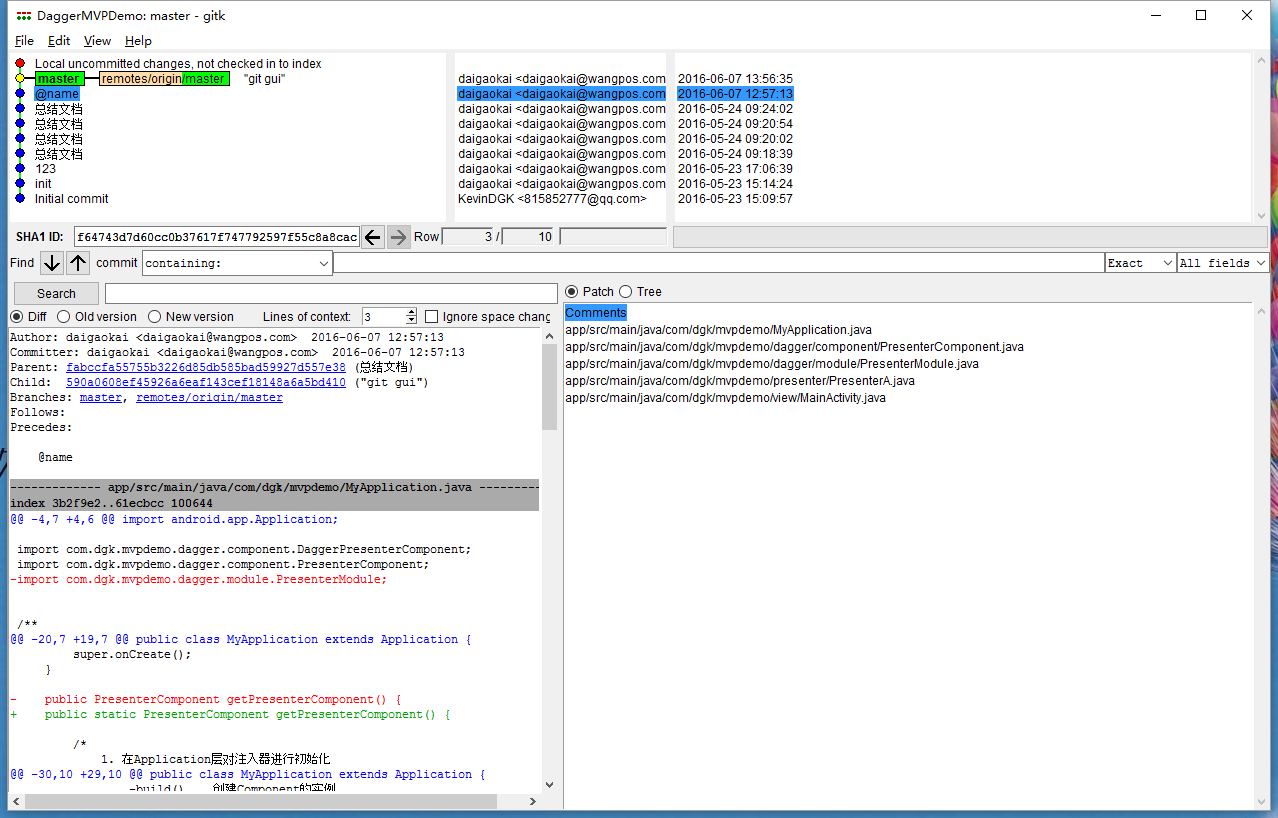 注意:个人建议使用命令行方式进行版本管理,但是可以使用图形化界面看本次代码的改动,比较方便。