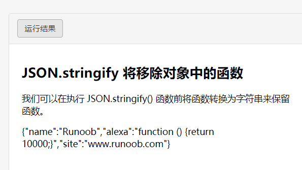 我们可以在执行 JSON.stringify() 函数前将函数转换为字符串来避免以上问题的发生: