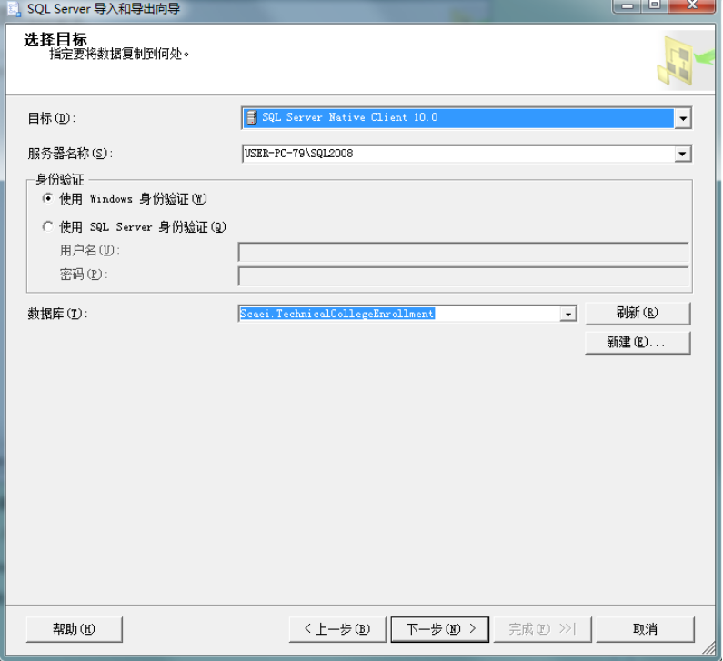 3、设置要导入数据的源,如下图,设置成功后,点击“下一步”按钮: