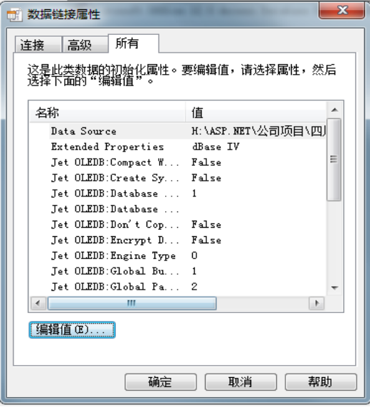 设置Extended properties的值得为dBase IV