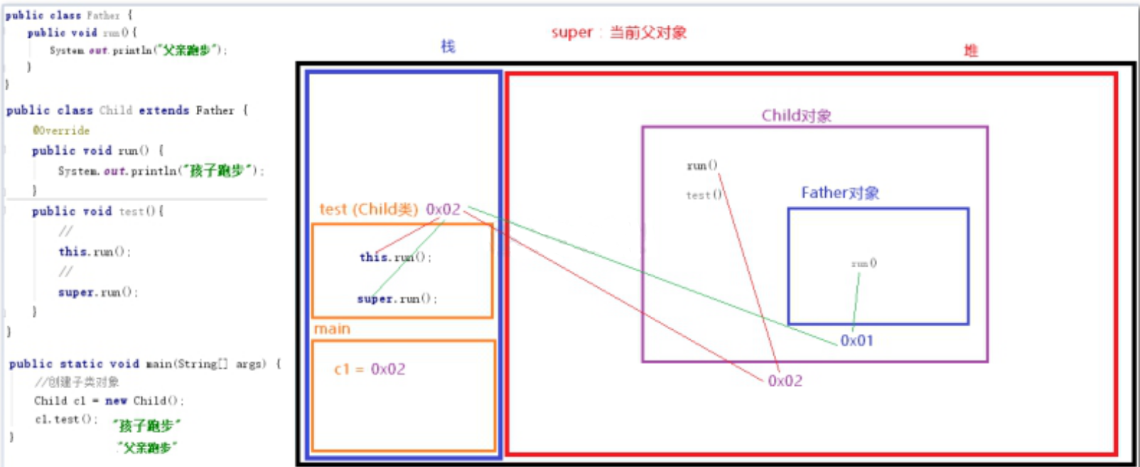 this :当前对象super:当前父对象两个关键字中保存的都是对象的地址值。 |
