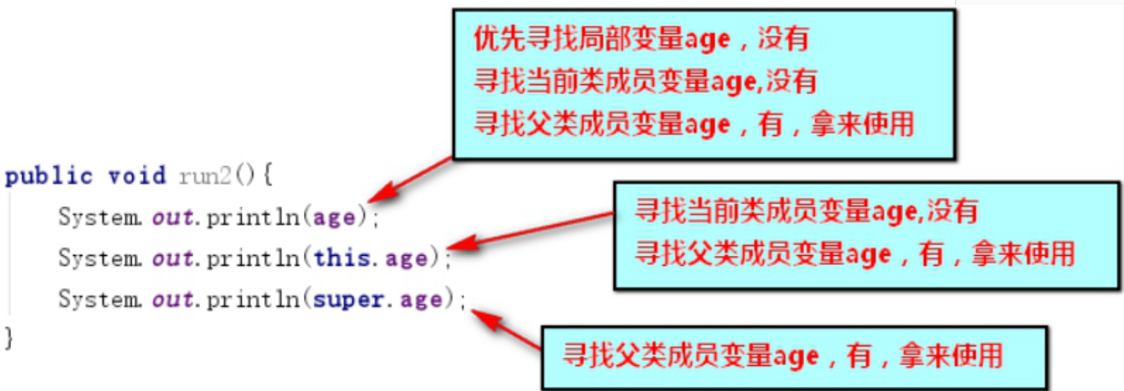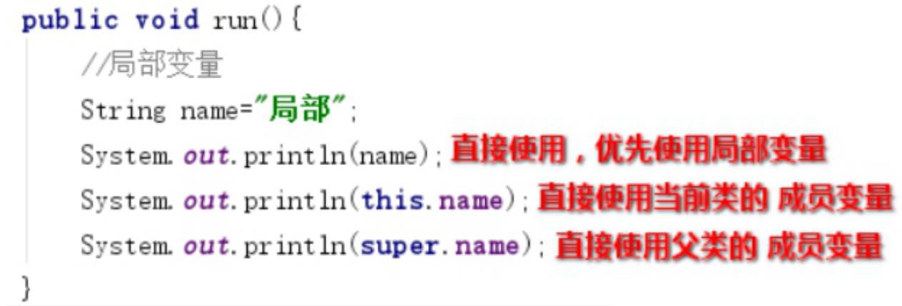 父类的成员变量:super.成员变量名