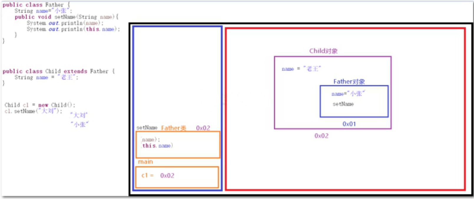 如果没有加关键字,默认补上this关键字this:当前对象 (方法头上找地址)super:当前父对象(方法头上地址的 父亲)如果没有加入this或super关键字,默认补this关键字 |