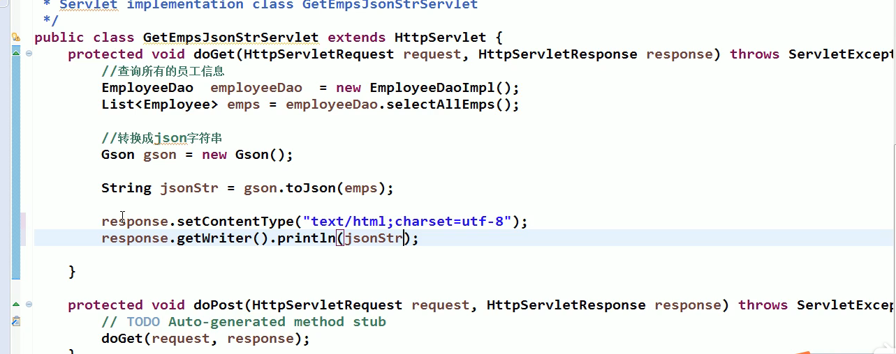 - 用于把java数据转化为JSON,然后转化为字符串显示在jsp中,就不用使用原来的转发页面了