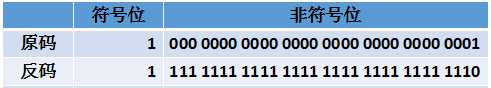 反码就是将原码除符号位以外的值全部取反,原来是1的变为0,原来是0的变为1。例如使用-1的原码得到的反码如下图所示: