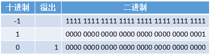最后,最左端的符号位也会进位1变成0,丢弃溢出的1,就得到最后的结果0的二进制表示32个0。