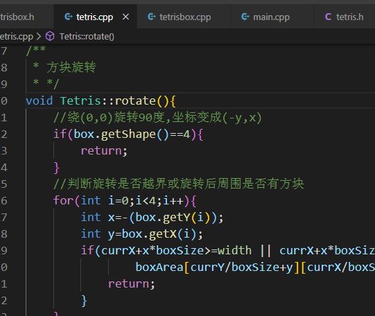 那么可以根据每个坐标绘制出任意长度的方块,那么方块的旋转就是更改坐标