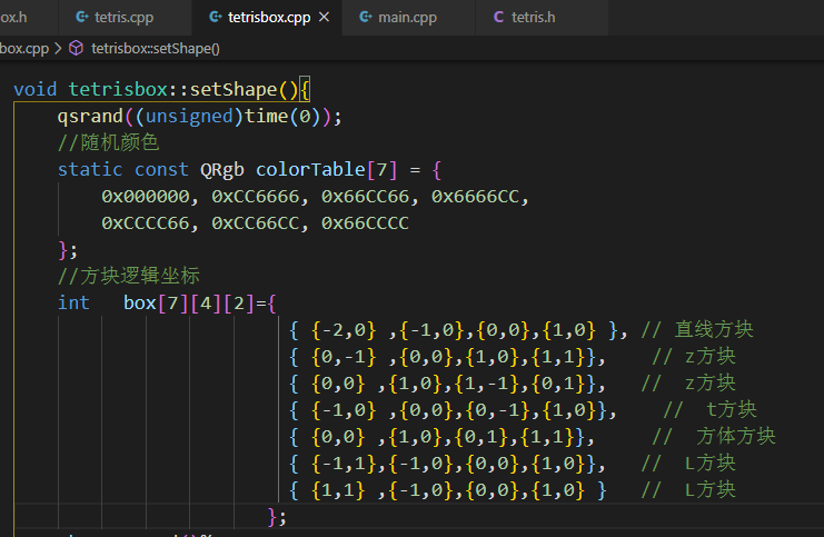 之后就是绘制方块的方式,根据qt自带的函数进行绘制,主要是继承QWidget类,然后重写void paintEvent(QPaintEvent *);方法进行绘图,