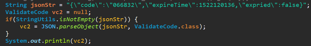 当ValidateCode有两个构造函数,且先后位置如图时,fastjson反序列化时,expiretime是不正确的。两个构造函数互换位置后可以正常反序列化。