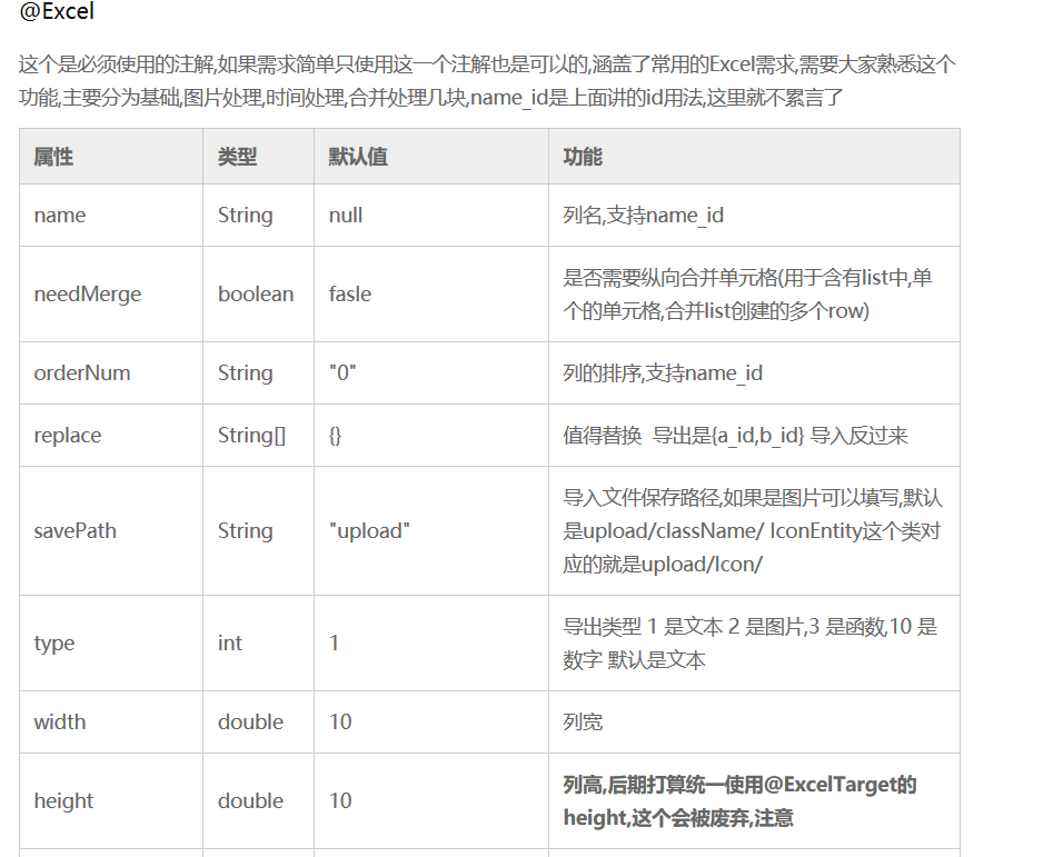 上面截图我只是截取官方文档上的一部分,大家想详细知道,可参考官方文档:http://easypoi.mydoc.io/#text_197835