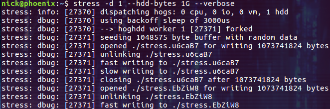$ stress --cpu 3 --io 3 --vm 2 --vm-bytes 10M --vm-keep