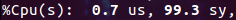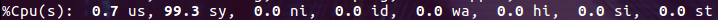 使用 top 命令查看 CPU 的状态如下(此时的 CPU 主要消耗在内核态):