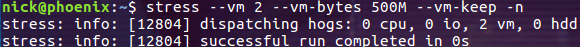 $ stress --vm 2 --vm-bytes 500M --vm-keep