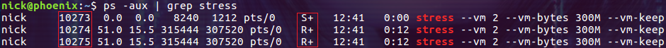 $ stress --vm 2 --vm-bytes 300M --vm-keep