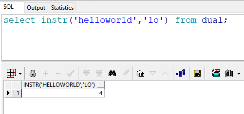 2 select instr('helloworld','lo') from dual; --返回结果:4 即:在“lo”中,“l”开始出现的位置
