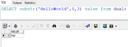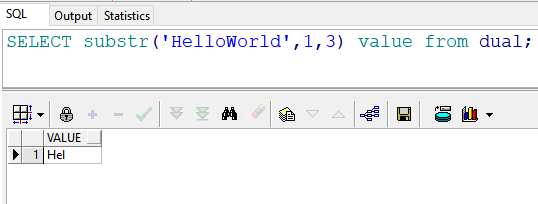 2、select substr('HelloWorld',1,3) value from dual; //返回结果:Hel,截取从“H”开始3个字符