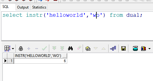 3 select instr('helloworld','wo') from dual; --返回结果:6 即“w”开始出现的位置