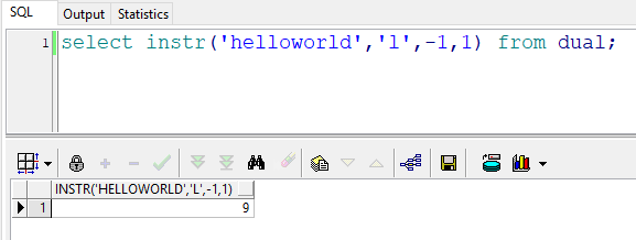 4 select instr('helloworld','l',-1,1) from dual; --返回结果:9 也就是说:在"helloworld"的倒数第1(d)号位置开始,往回查找第一次出现的“l”的位置