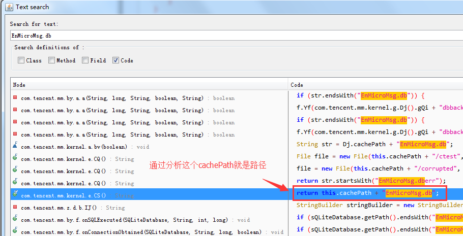 加密数据库都放在这种类似于md5文件夹下面,所以我们为了后面更好的操作,所以我们要搞清楚这个文件夹名字怎么来的,这个比较简单,再去dex文件中跟踪即可: