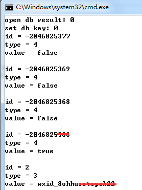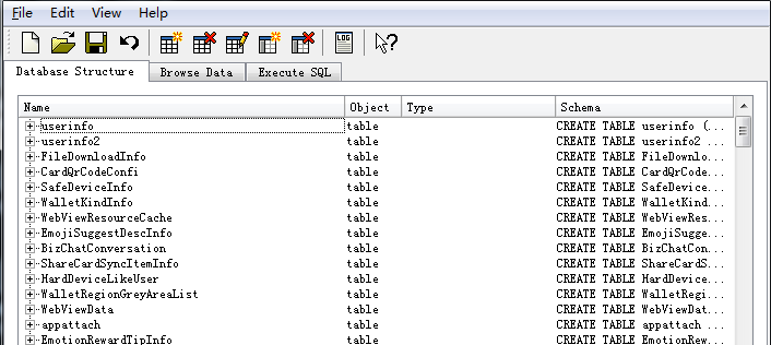 因为之前他在微信上把他的uin和imei发给我了,所以我一眼就看到了这里有他的imei和uin值,也就是说那个工具的确是通过这两个序列化文件来获取imei值和uin值然后计算密码的,所以我再一次相信他也是用MD5计算那个密码的,所以这时候我就不用他发给我的那个信息了,我就从这里打印的结果直接计算结果,然后在用sqlcipher.exe工具直接查看,竟然解开了: