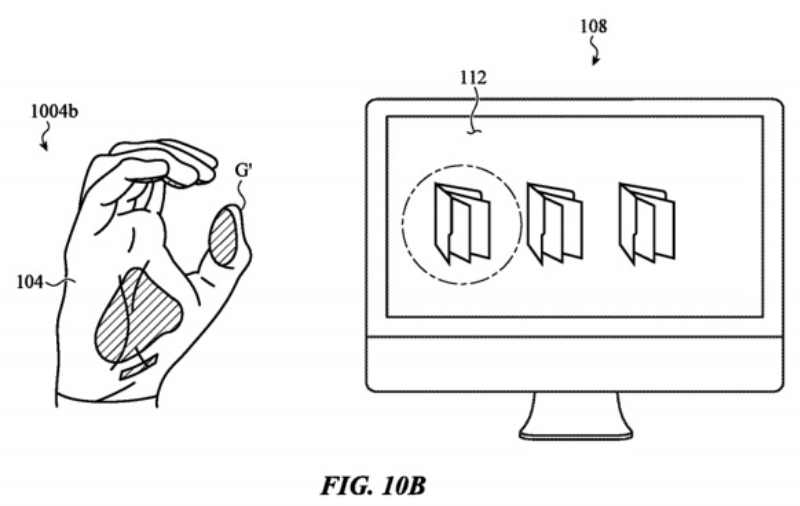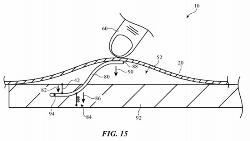 在2019年的另一份文件中,苹果通过轻轻挤压手指两侧来提升用户在显示屏上打字时的物理反馈。同年2月,苹果还曾提出在衣物中布署导电线的相关方案。