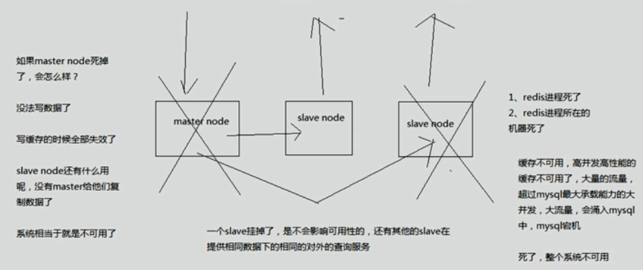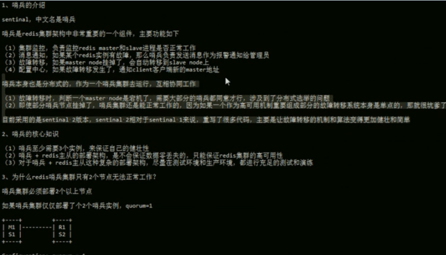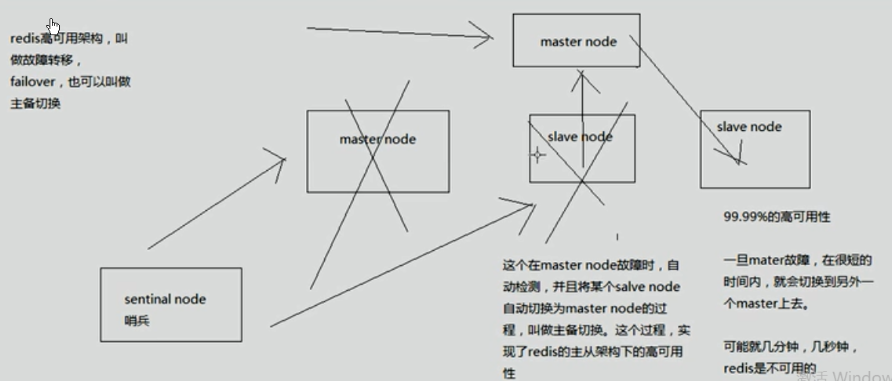 3、redis高可用:如果你做主从架构部署。其实就是加上哨兵就可以啦。就可以实现,任意一个实例宕机,自动会进行主备切换。