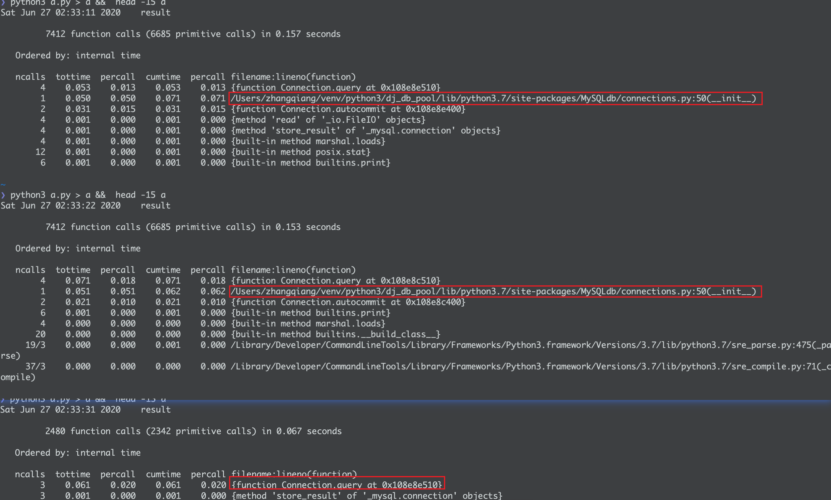 随便查询一个表用cProfile看查看时间