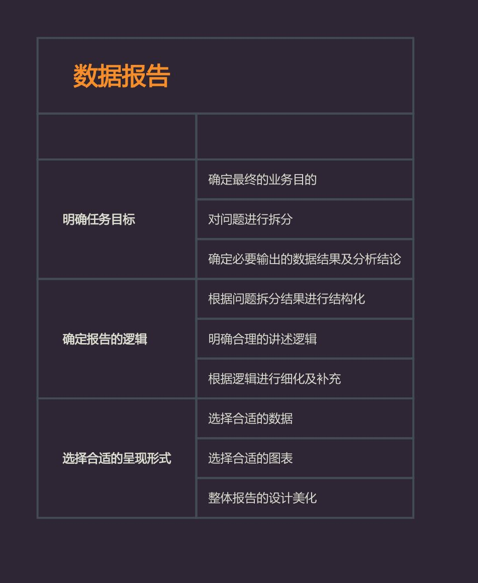 确定好输出的大致内容、在数据分析过程中得到有用的结论之后,接下来应该思考,如何把这些分散的信息整合起来,为了达到最终的说服力,应该以怎样的逻辑进行整合。