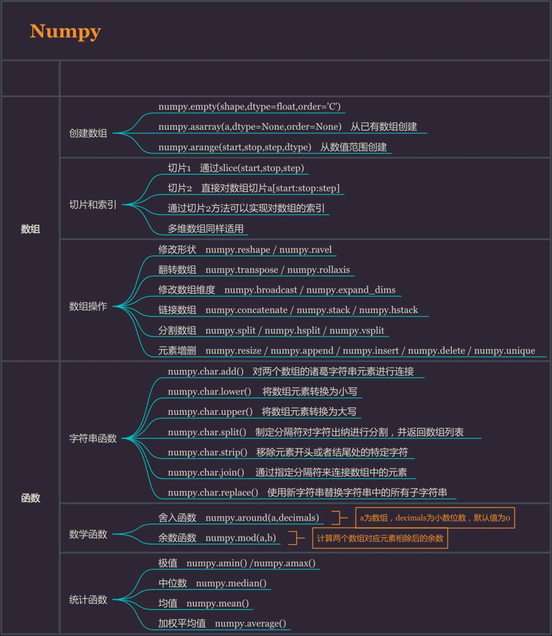另外,Python中两个非常重要的库Numpy和Pandas也是需要掌握的,我们的很多数据处理及分析方法就源于其中。