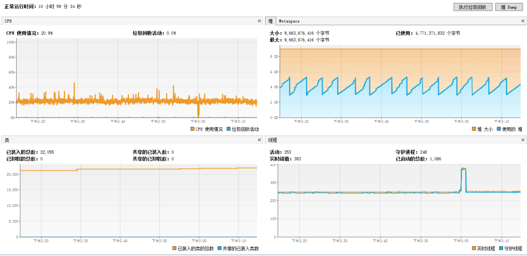JAVA_OPTS="-server -Xmx9g -Xms9g -Xmn3g -Xss500k -XX:+DisableExplicitGC -XX:MetaspaceSize=2048m -XX:MaxMetaspaceSize=2048m -XX:+UseConcMarkSweepGC -XX:+CMSParallelRemarkEnabled -XX:LargePageSizeInBytes=128m -XX:+UseFastAccessorMethods -XX:+UseCMSInitiatingOccupancyOnly -XX:CMSInitiatingOccupancyFraction=70 -Dfile.encoding=UTF8 -Duser.timezone=GMT+08"
