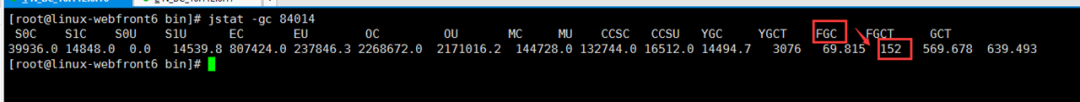 4.通过gc查看,发现24小时内,FullGC发生了152次