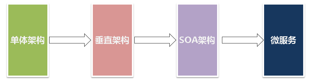 从架构发展角度,软件项目经历了如下阶段的发展: