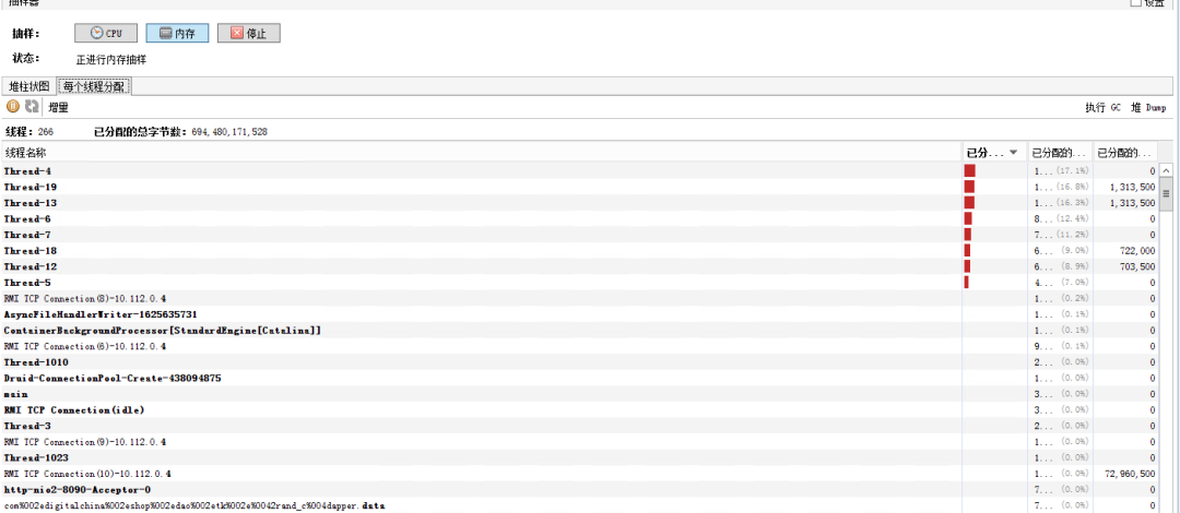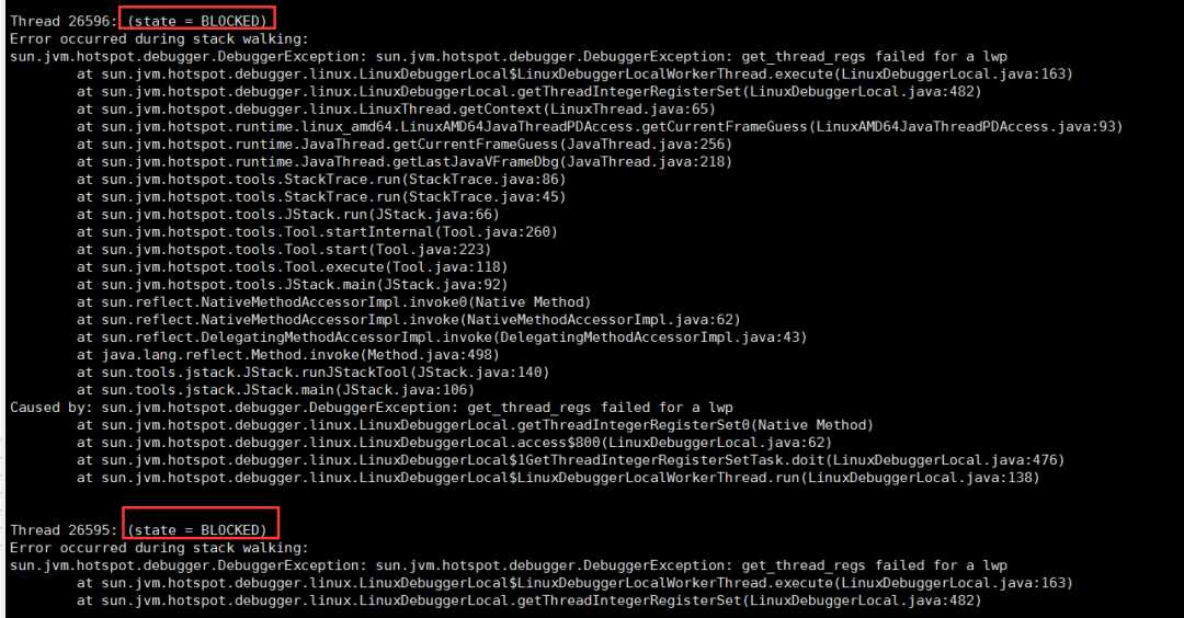 5.再看看堆栈,发现有一些线程阻塞和死锁