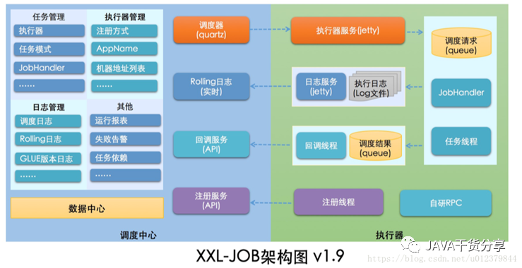 (2)执行模块(执行器):负责接收调度请求并执行任务逻辑。任务模块专注于任务的执行等操作,开发和维护更加简单和高效;接收“调度中心”的执行请求、终止请求和日志请求等。