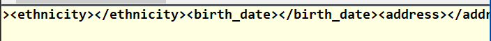 方式二,转换异常,会自动转换成自闭合标签(ethnicity、birth_date、address)