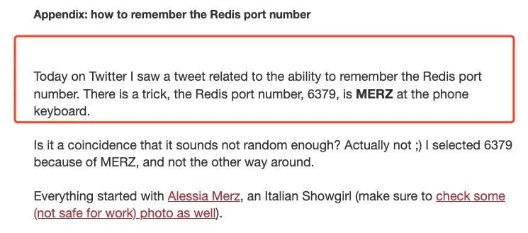 我们都知道 Redis 的默认端口是 6379,这个端口号也不是随机选的,而是由手机键盘字母「MERZ」的位置决定的。