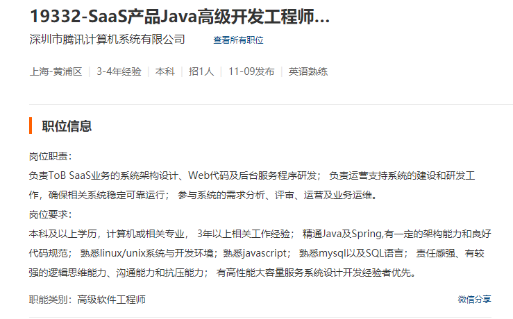 我们再来看一下腾讯Java高级开发工程师的招聘要求,年薪至少40w起步了吧!从下面的招聘信息可以看出,除去Java基础/集合/多线程这些,这些能力格外重要: