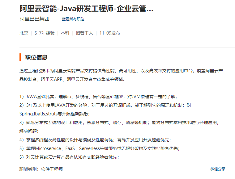 再从应届生的角度来看: 我们还是看阿里巴巴的官网相关应届生 Java 工程师招聘岗位的相关要求。