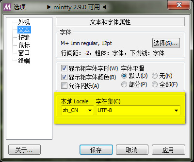 在git bash的界面中右击空白处,弹出菜单,选择选项->文本->本地Locale,设置为zh_CN,而旁边的字符集选框选为UTF-8。