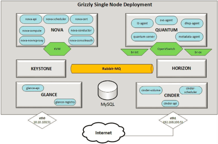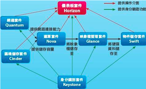 OpenStack的Grizzly版共有7个不同功能套件,分别是: