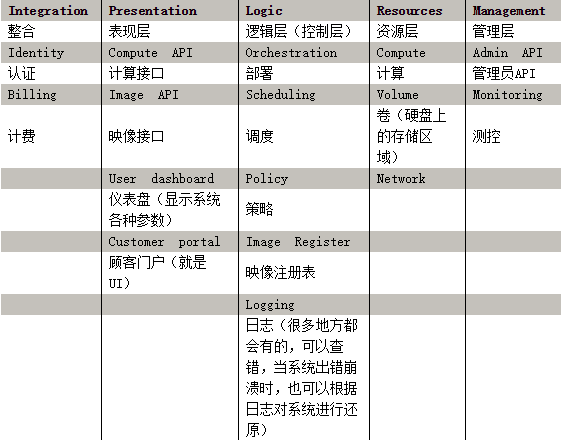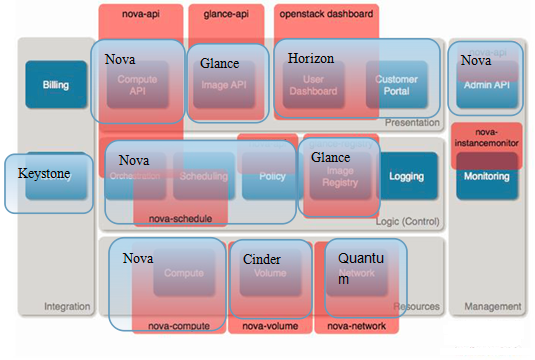 以上是针对Openstack组件的一些通俗解释,如果大家觉得不够详尽,可以查阅一下其他资料:但用过百度一下的朋友就肯定会发现,网上流传着好几个不同版本的架构图,几种架构图描述的方式都相差很大,第一眼看上去甚至都不是一个东西,面对这种情况,我们可以假设他们都是对的,然后找出他们之间的联系,这样我们也可以加深对openstack的理解;