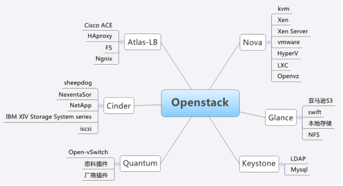 OpenStack是一个云平台管理的项目,它不是一个软件。这个项目由几个主要的组件组合起来完成一些具体的工作。想要了解openstack,第一步我们可以观察他的概念图:
