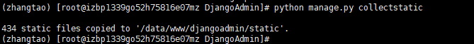 1 STATIC_ROOT='/data/www/djangoadmin/static' #新增的配置,用来将静态文件收集到此文件夹