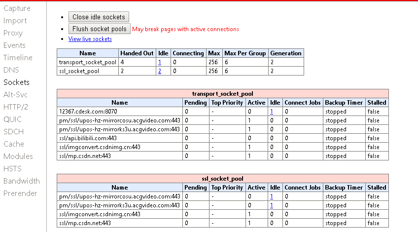 查看浏览器的sockets的状态: