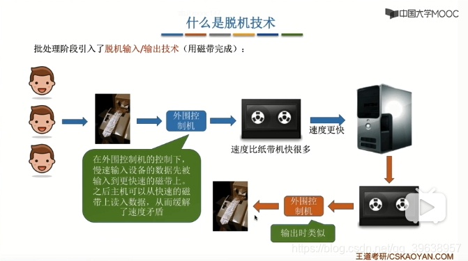脱机指的就是: 输入输出不再需要主机干预,由外围控制机去负责输入输出。